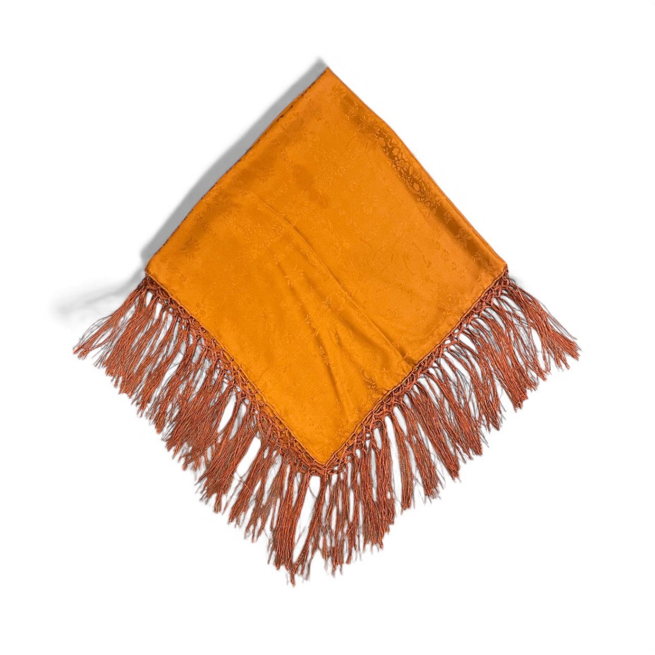 Klassisches Seidentuch mit Fransen & gleichfarbigen Blumenaufdruck.